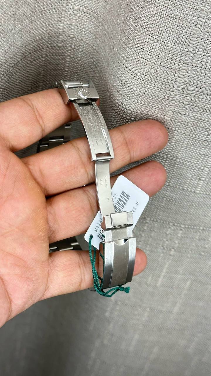 The watch is paired with a Rolex bracelet that complements its sporty yet luxurious personality. Whether featuring the classic Oyster bracelet or another premium option, the band is designed for secure wear and all‑day comfort. Every link is polished and engineered to move smoothly with the wrist, blending strength with sophistication.