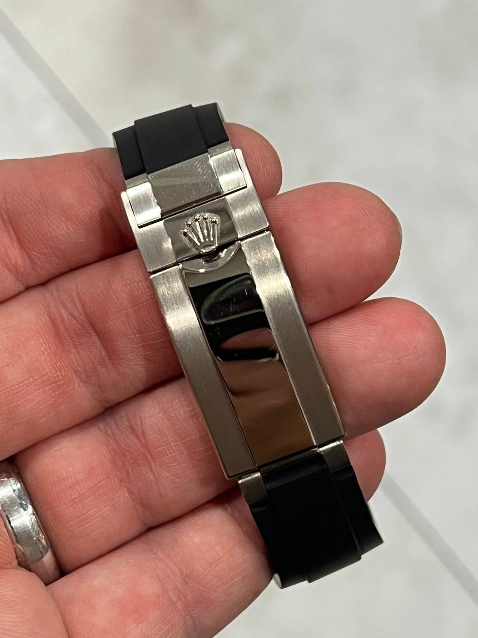 The Oysterflex strap enhances the sportiness of the watch’s design while maintaining the luxury and durability expected from a Rolex timepiece. It is fitted with a secure clasp system that ensures a perfect fit and confident wear, every time.