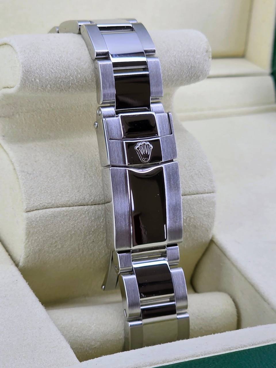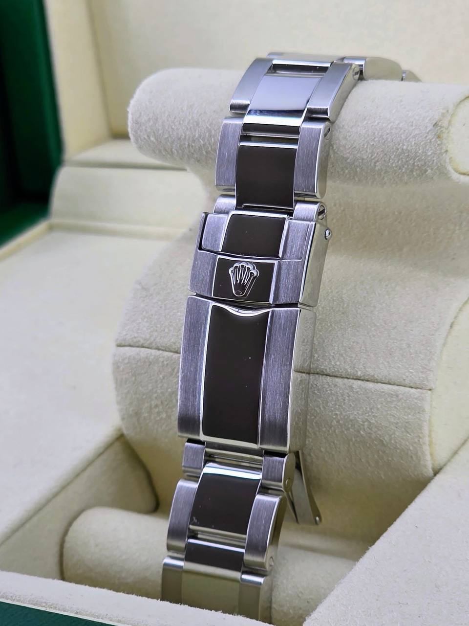 The watch is paired with Rolex’s iconic Oyster bracelet, known for its balance of strength, comfort, and elegant design. The three‑link configuration ensures secure wear while remaining agile and comfortable on the wrist for extended periods.